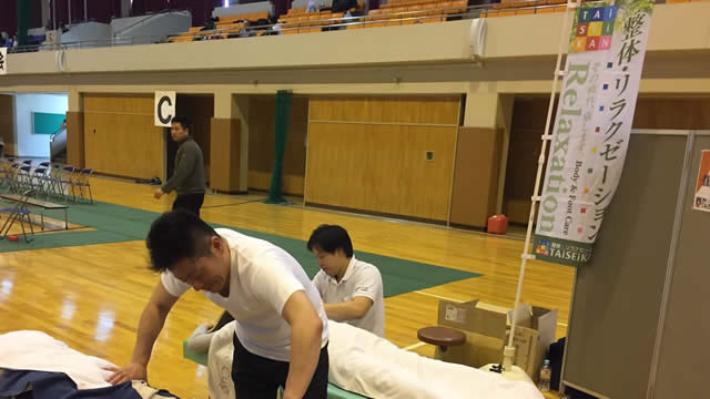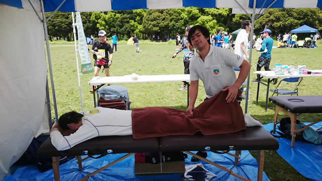 スポーツを楽しむ皆さまに、より充実したイベントにしてもらいたい、という想いから、マラソン大会をはじめとする各種スポーツイベントにて、TAiSEiKANのマッサージを体験いただける、無料体験サービスのブース出展を行っています。体調に合わせて、ランニングの前もしくは後にマッサージが受けられ、ランナーの方からもご好評いただいています。